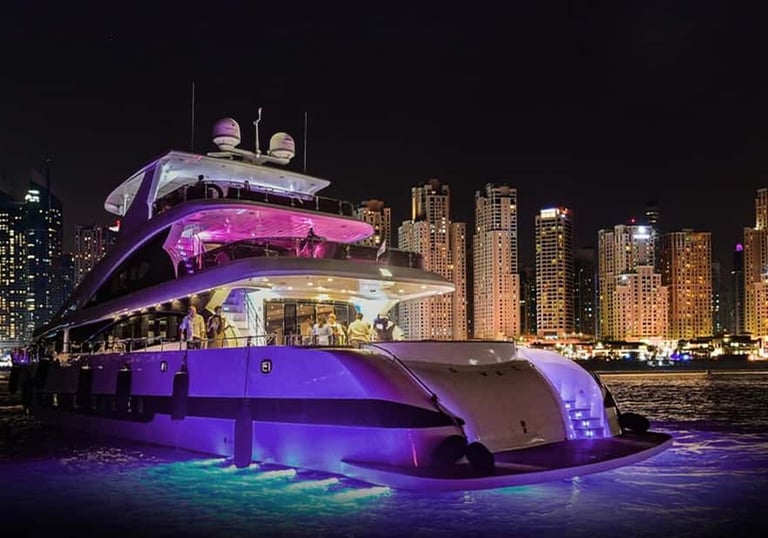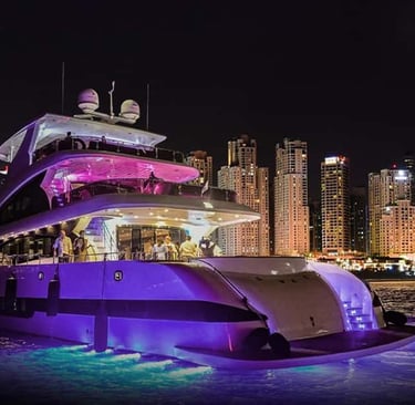 Set sail on a luxury yacht and explore Dubai’s iconic coastline like never before. Whether it’s a sunset cruise, a full-day private charter, or an evening of dining on the water, we make every detail perfect. Our fleet of luxury yachts are equipped with everything you need for a truly special experience: