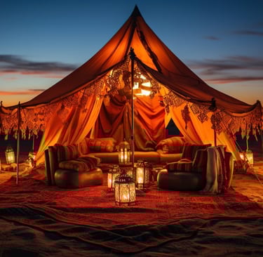 An exclusive desert dinner under the stars, featuring live entertainment such as belly dancing and fire shows.
